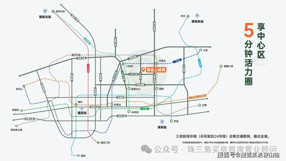 ③【享中心区5分钟活力圈】3地铁线号线号线分钟内联通城市主干道(北环大道、清平高速、坂银快速通道、深南大道、滨河大道),交通路网四通八达。20分钟内抵达城市枢纽(福田高铁站、深圳北站、深圳站、福田口岸、皇岗口岸),出行方便。(市政配套设施及规划中、建设中的公共设施配套内容,最终均以政府有关部门核准及审批文件为准)