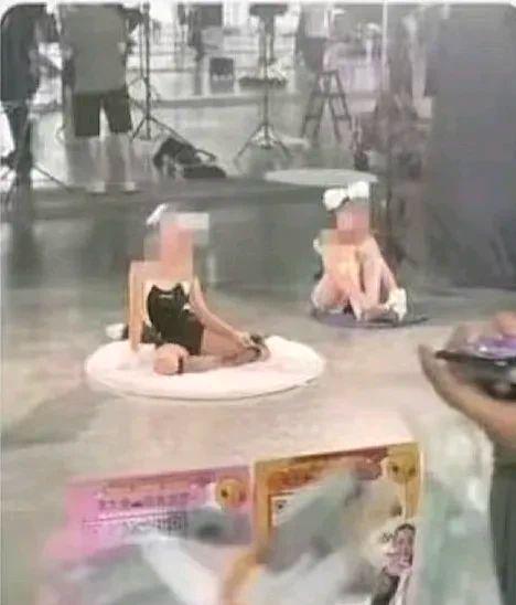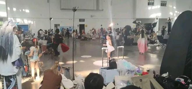 在网传的现场图片中,在一处类似临时搭建的简易摄影场地前,有2名女童身着连体的紧身服,脚上还套有半截渔网袜。